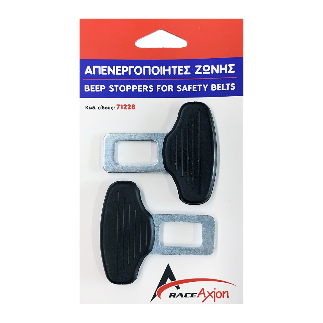 Απενεργοποιητές ζώνης ασφαλείας από την RACE AXION, κατασκευασμένοι από μέταλλο (σίδερο), διαθέτουν αποσπώμενη πλαστική αντιολισθιτική θήκη, που μπαίνει στη λαβή για καλύτερο κράτημα, καθώς και κλείστρο (γλώσσα) με μεγάλη τρύπα. Έχουν universal εφαρμογή για να ταιριάζουν στις περισσότερες ζώνες ασφαλείας και είναι ιδανικοί για οχήματα που διαθέτουν εργοστασιακό ηχητικό alarm (συναγερμό), απενεργοποιώντας τον ήχο (μπιπ-μπιπ) όταν δεν γίνεται χρήση της ζώνης ασφαλείας. Εύκολη και γρήγορη τοποθέτηση.